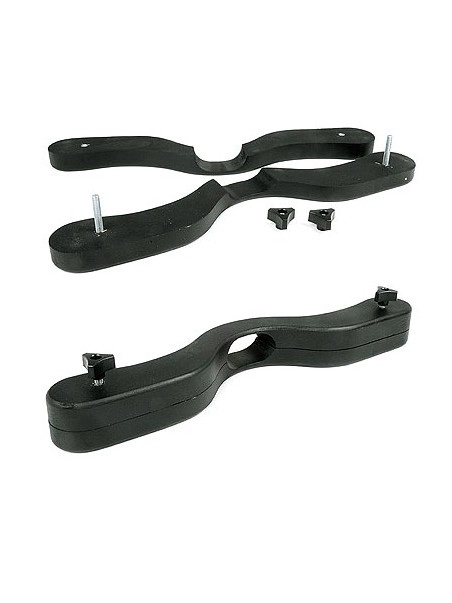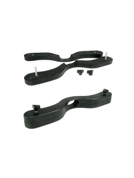 Agenouillez-vous. Comme pour un ballstretcher, attachez les couilles en les emprisonnant avec les deux lamelles, maintenez les fermement avec les deux vis disposées à chaque extrémité de cet accessoire de bondage.
