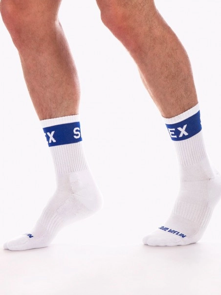 Sport et fétiche, les nouvelles chaussettes sont coupées à mi-hauteur et s’adaptent parfaitement à votre jockstrap ou à votre tenue de sport. Le texte imprimé au bord de chaque chaussette est explicite et annonce qui vous êtes. Les chaussettes en coton sont particulièrement adaptées aux activités sportives, car elles sont respirantes.