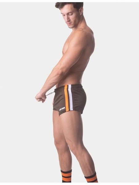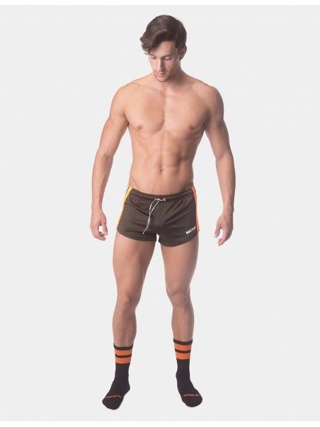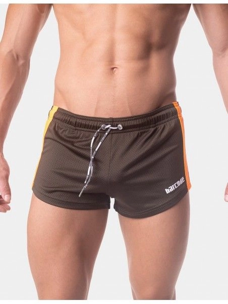 Notre mini short Timur de la marque allemande BarcodeBerlin fleure bon la saison estivale, et ses périodes de chaleurs intenses. La coupe taille basse et très prés du corps en font évidemment un short ultra-sexy. Le design aux bandes latérales de couleurs coordonnées à la couleur dominante, ajoute une note sportive au short.