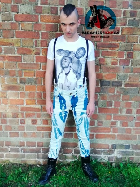 Le bleacher Super Skinny avec ses motifs du00e9lavu00e9s est inspiru00e9 du look skinhead des annu00e9es 70 et 80.