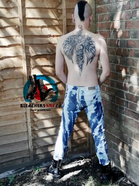 Le bleacher Skinny avec ses motifs du00e9lavu00e9s est inspiru00e9 du look skinhead des annu00e9es 70 et 80.