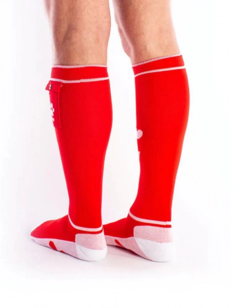 Complu00e9tez votre look sportswear et/ou puppy avec ces chaussettes hautes au message plutu00f4t clair. Elles disposent u00e9galement de deux petites poches tru00e8s pratiques en soiru00e9e.