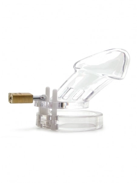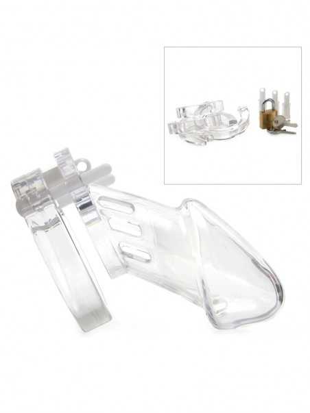 Représentant la forme naturelle du pénis, la CB-6000 est totalement transparente. Sa forme permet aussi d’être porté discrètement sous les vêtements. L’avantage de cette cage est la construction des anneaux : divisés en deux sans charnières. La CB6000 permet un port permanent 24/24. Elle est légère et hygiénique grâce aux fentes de ventilation qui permettent une aération constante et un nettoyage complet. Pour les globes trotters, les serrures en plastique fournies sont conseillées pour éviter les détections de métal.