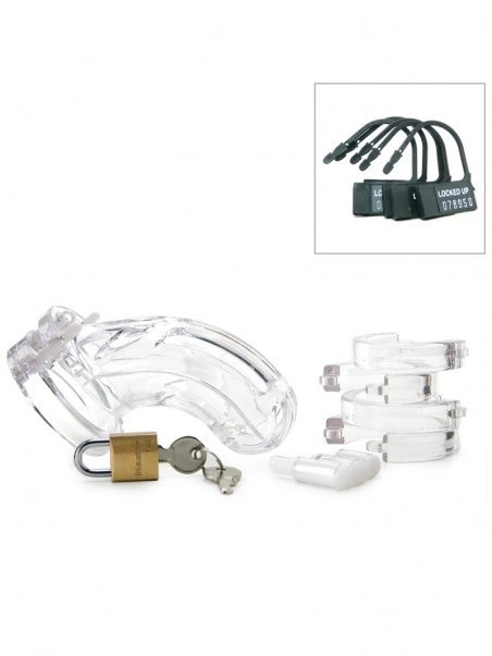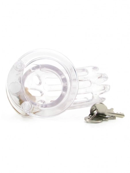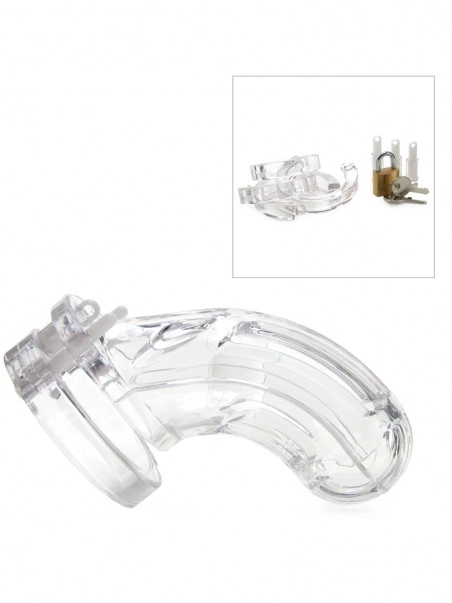 Cage en polycarbonate transparent représentant la forme naturelle du pénis, Curve est plus grande que la cage CB6000. Confortable, elle permet un port permanent.