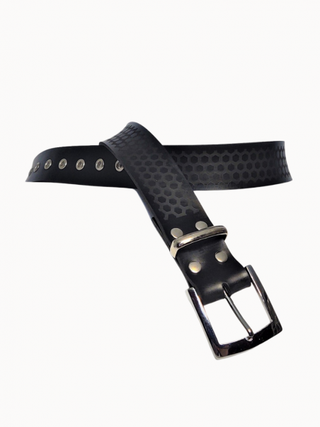 Complu00e9tez votre look latex avec cette ceinture en latex souple offrant une face lisse et une face texturu00e9e en forme du2019hexagones. Chaque cranu00a0 dispose d’un renfort en mu00e9tal afin de garantir soliditu00e9 et durabilitu00e9. Il s’agit de l’accessoire idu00e9al et indispensable pour tous les adeptes de tenues complu00e8tes en latex !