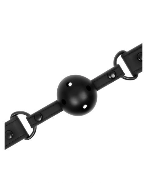 Optez pour la soumission agru00e9able avec ce bu00e2illon dotu00e9 d’une boule perforu00e9e pour respirer et d’une laniu00e8re ru00e9glable en cuir vegan.