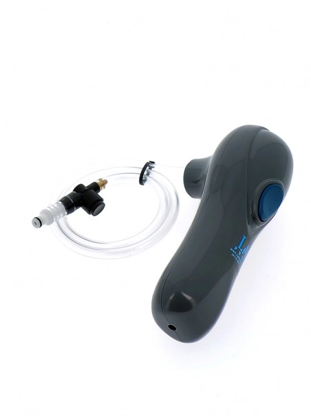 Lu2019utilisation de la pompe u00e0 bite est tru00e8s simple. Vous devez clipser le connecteur mu00e2le (reliu00e9 au tuyau souple de qualitu00e9 professionnelle) u00e0 un de nos cylindres pour pu00e9nis.