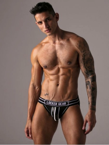 Notre su00e9duisant jockstrap taille basseu00a0de la marque espagnole Locker Gear est conu00e7u pour faire du sexe : la poche frontale est u00e9quipu00e9e du2019une glissiu00e8re, et les deux sangles u00e0 l’arriu00e8re soutiennent et valorisent vos fesses.