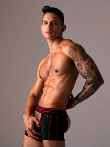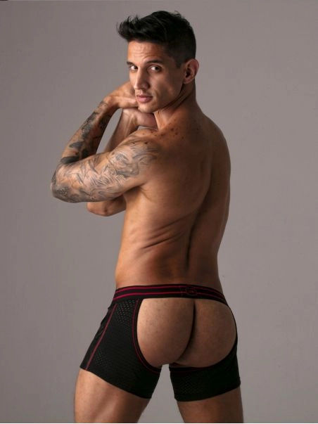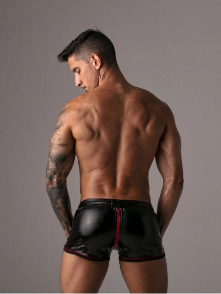 Il nu2019y a pas de doute, ce short est fait pour baiser. Cette cru00e9ation originale de la marque Locker Gear, imite la coupeu00a0du2019une paire de chaps, mais dans une version short ou00f9 vous u00eates complu00e8tement exposu00e9 devant comme derriu00e8re.