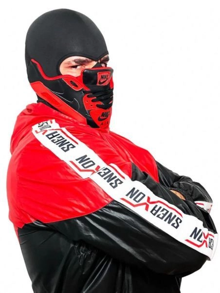 Sneakermask est une marque créée par un styliste fétichiste du sport qui propose une gamme de masques fabriqués à partir de baskets Nike ou de grandes marques pour un look unique.