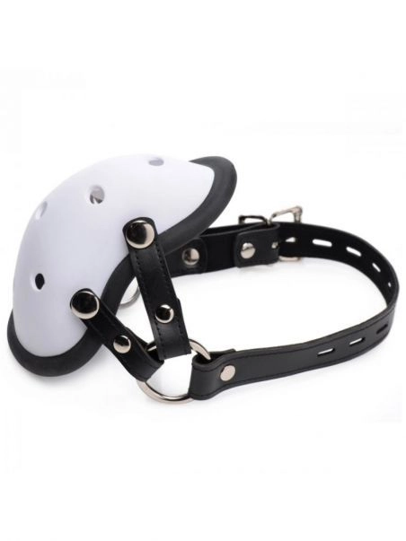 Adoptez un look qui ravivera les fans de football amu00e9ricain avec cette museliu00e8re inspiru00e9e des coquilles des athlu00e8tes. Libre u00e0 vous de la mettre telle quelle, ou en glissant une chaussette ou un jockstrap u00e0 l’intu00e9rieur. Pour complu00e9ter le style fetish, cette museliu00e8re est u00e9quipu00e9e d’une laniu00e8re ru00e9glable en cuir.