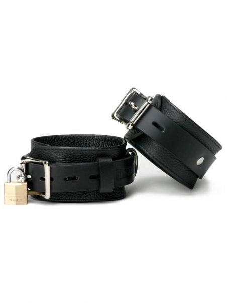 Laissez-vous aller u00e0 votre imagination gru00e2ce u00e0 cette paire de menottes renforcu00e9e en cuir. Entiu00e8rement ru00e9glables, elles maintiennent fermement les poignets.