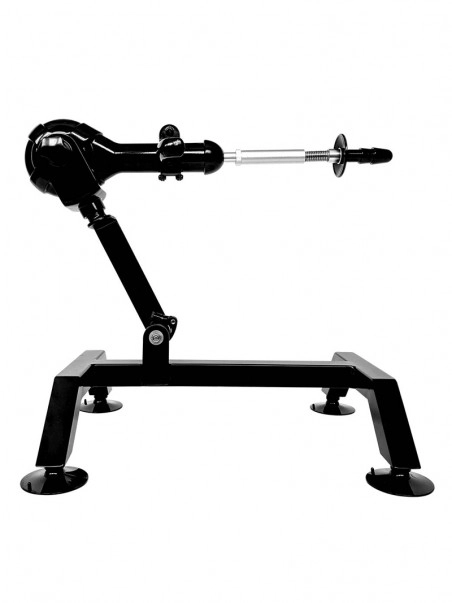 La machine est u00e9quipu00e9e du2019un support u00e0 godemichet qui se fixe facilement au cadre.