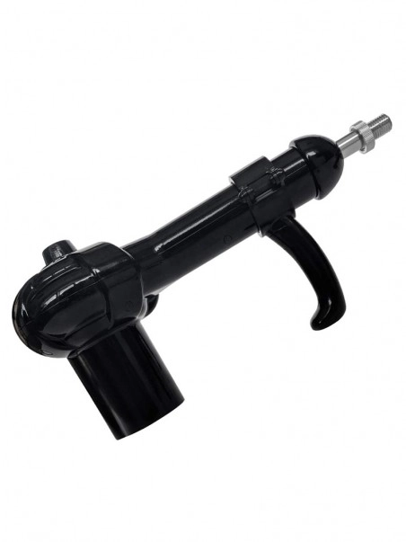 La Fuck Machine est vendue sans gode. Utilisez un gode anal pourvu d’une cavité à sa base permettant d’être emboîté sur la base du canon. Un plug (en photo) est prévu pour fixer les sex toys.