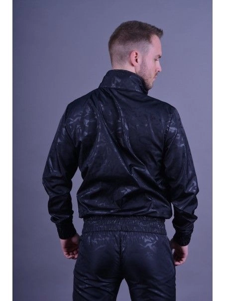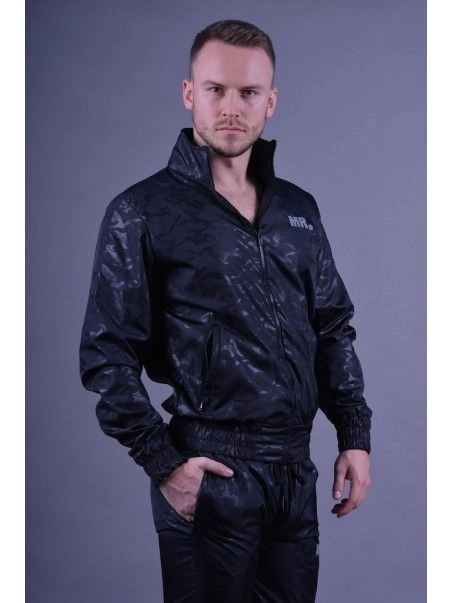Fabriquu00e9e en nylon, cette veste est un u00e9lu00e9ment indispensable pour tout fu00e9tichiste du sportswear. Dotu00e9e d’un imprimu00e9 camouflage gris et d’une taille cintru00e9e, elle peut u00eatre portu00e9e sans rien en dessous. Elle dispose d’un bas u00e9lastique mettant en avant le cul ainsi que deux poches avant zippu00e9es.
