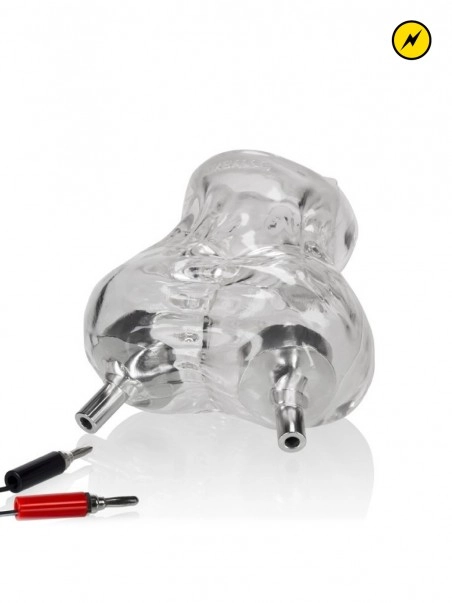 Fabriquu00e9 u00e0 partir d’un mu00e9lange TPR et silicone, le SackSling peut s’u00e9tendre jusqu’u00e0 4 fois sa taille. Il est facile u00e0 poser et facile u00e0 retirer. 2 contacteurs mu00e9talliques u00e9lectriques (femelles 4mm) sont placu00e9s sous chaque testicule.