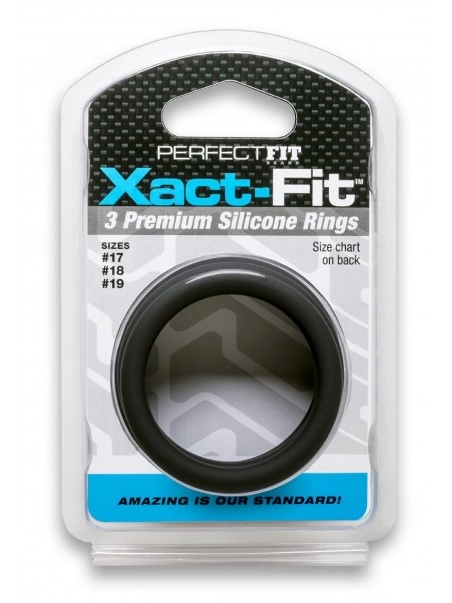 Pour ceux qui ne sont pas dans le diamu00e8tre "standard" ce pack est fait pour vous. Le pack Xact-Fit Medium vous propose 3 cockrings allant de 43 u00e0 48 mm. Avec ce lot, vous allez trouver l’ajustement parfait pour une u00e9rection longue et dure.