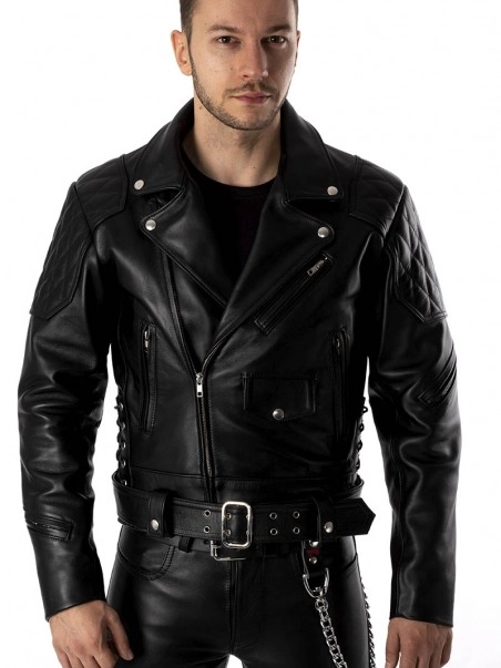 Notre Perfecto Bruthal Gear en cuir s’approche de la perfection. Il a été pensé pour qu’il vous apporte confort et style. Il est fait dans un cuir épais de qualité qui ne craint pas les années. La finition est soignée. Le blouson est fabriqué dans nos ateliers, avec un souci particulier apporté aux détails. Il est doublé et dispose de plusieurs poches intérieures et extérieures. L’ajustement à la taille se fait par des lacets sur les côtés ainsi que son ceinturon double boucle. Les manches sont équipées d’une fermeture éclair au niveau du poignet pour en régler la largeur selon votre souhait.