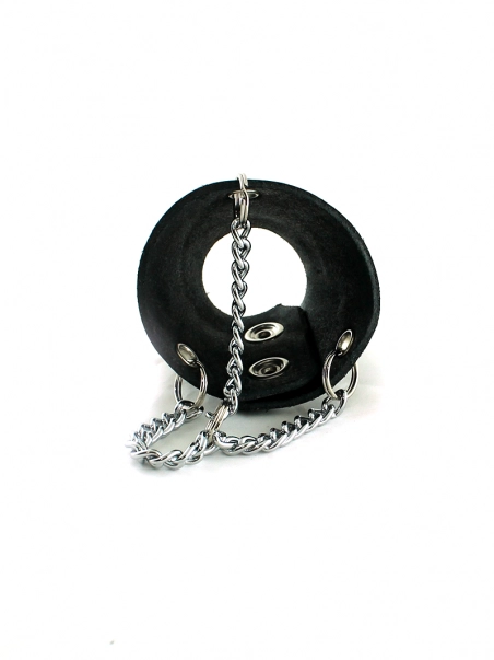 Ce parachute en cuir noir permet de fixer un poids u00e0 l’extru00e9mitu00e9 de ses 3 chau00eenettes. Il se ferme u00e0 l’aide de boutons pressions. Diamu00e8tre interne de la base: 30 mm.