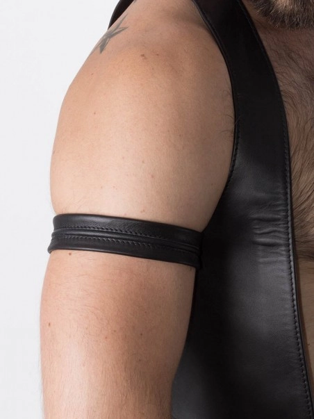 Ce brassard en cuir avec liseru00e9 dispose de boutons pression capable de s’adapter au diffu00e9rentes circonfu00e9rences de bras (26, 28, 30 et 32 cm). Disponible en 5 couleurs diffu00e9rentes.