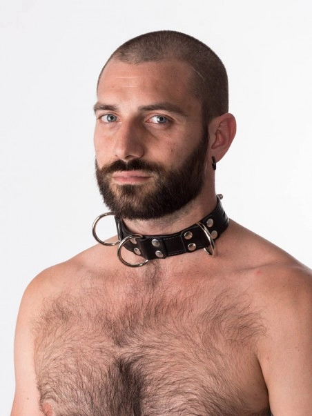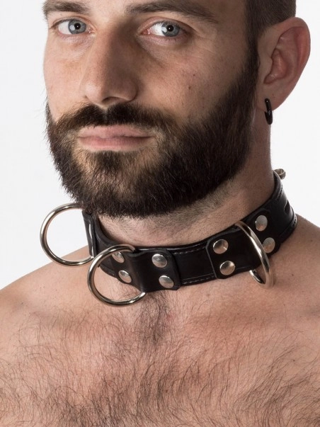 Collier en cuir, cadenassable. Avec ces 4 anneaux en D, ce collier est parfait pour un asservissement total.u00a0