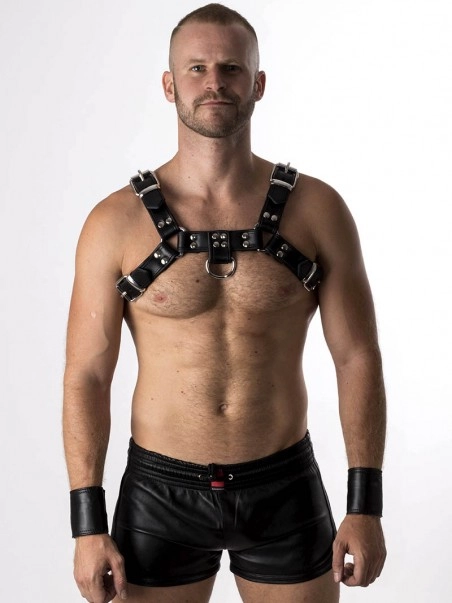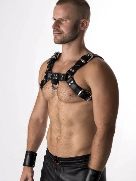 Best Seller de sa catu00e9gorie, c’est aussi notre harnais pru00e9fu00e9ru00e9. Ce harnais en cuir est fabriquu00e9 u00e0 partir d’un cuir fin et doux, doublu00e9 d’une sangle de cuir noire plus u00e9troite. Les deux u00e9lu00e9ments sont cousus et l’ensemble est rivetu00e9. Ce modu00e8le est entiu00e8rement fabriquu00e9 en noir. Nous vous proposons u00e9galement une du00e9clinaison de ce harnais avec des bords de diffu00e9rentes couleurs que vous pouvez du00e9couvrir dans notre rayon harnais. Comme tous les harnais en forme de H, le harnais RoB en cuir se porte u00e0 mi-poitrine, la boucle centrale devant toujours u00eatre pointu00e9e en direction du bas. Fait dans un cuir souple et confortable, le harnais s’ajuste au moyen de boucles sur chaque sangle.
