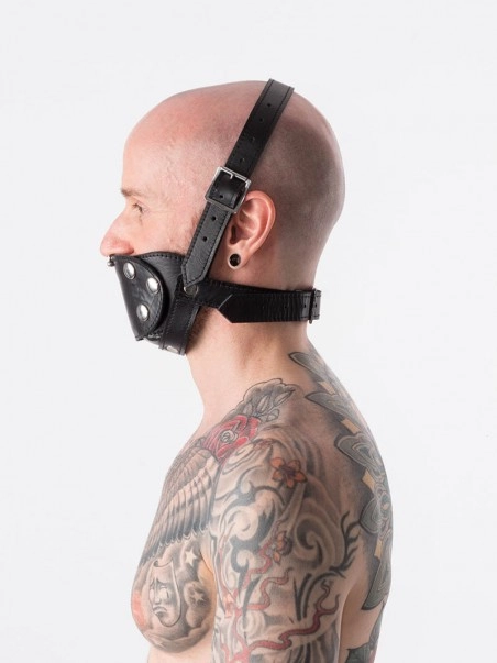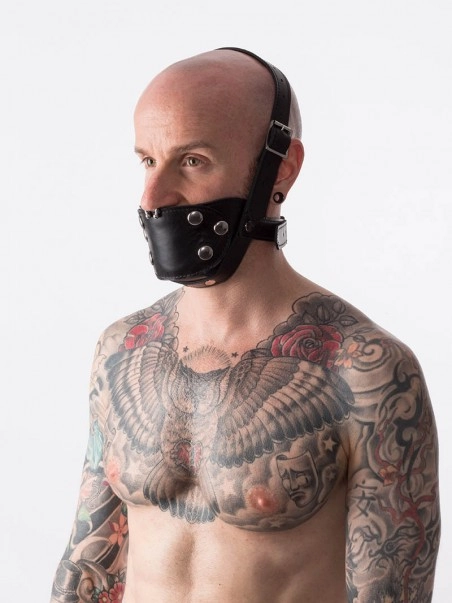 Museliu00e8re ru00e9glable pour un maintien parfait. Le bu00e2illon est du00e9tachable. Lesu00a0baillons uro, plug et contru00f4le de respiration (vendus su00e9paru00e9ment) s’adaptent u00e0 cette museliu00e8re.