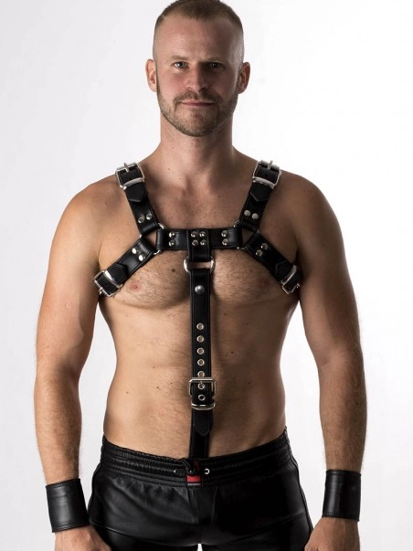 Idu00e9ale pour complu00e9ter votre harnais H Pitbull en cuir souple, cette sangle de prolongation entiu00e8rement ru00e9glable est faite dans un cuir souple de haute qualitu00e9. Elle dispose d’un cockring amovible d’un diamu00e8tre de 45 mm.