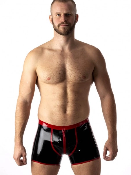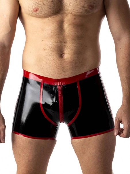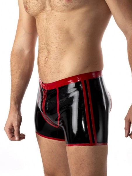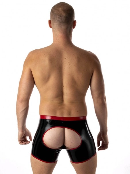 Short sexy, couleur noir et bords rouges avec l’empiu00e8cement des fessiersu00a0ouvert. Latex u00e9paisseur 0,60 mm. u00a0