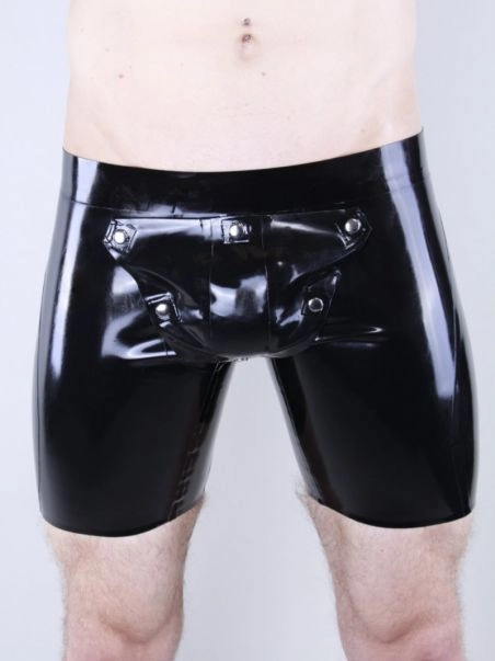 Pour u00eatre pru00eat u00e0 toutes les situations, ce short en latex offre un effet seconde peau et une poche avant amovible permettant d’utiliser votre bite immu00e9diatement.
